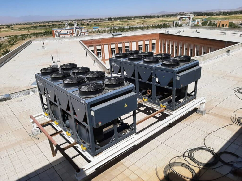 در این پروژه یک دستگاه چیلر هواخنک مرکزی به ظرفیت 80 تن تبرید واقعی نصب و راه اندازی شد.